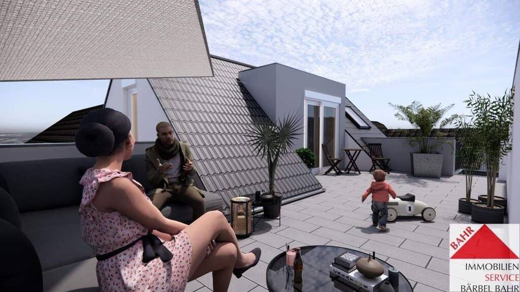 Auf der oberen Galerie-Ebene befindet sich ein lichtdurchflutetes Studio, das sich hervorragend als großzügiges Arbeitszimmer oder für Ihr Hobby nutzen lässt. Mit dem angrenzenden Abstellraum haben Sie zusätzlichen Stauraum, der Ihnen hilft, alles geordnet und aufgeräumt zu halten. Ein besonderes Highlight ist die großzügige Dachterrasse - Ihr privater Außenbereich mit Blick ins Grüne, perfekt für sonnige Stunden und entspannte Abende unter freiem Himmel.