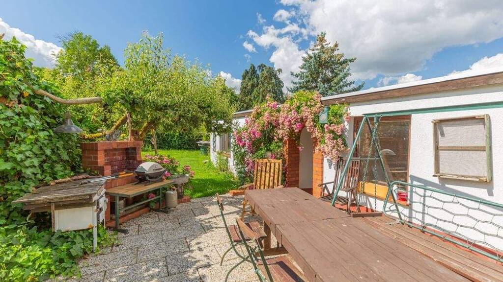 Auf dem Grundstück steht eine Finnhütte, die als Gartenhaus oder im Sommer für Gäste genutzt werden könnte. Weiterhin zum Grundstück gehören eine Garage und zwei Gebäude, die Sie für verschiedene Hobbys nutzen können.