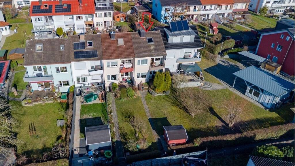 Dieses exklusiv von uns angebotene 5-Zimmer Reihenmittelhaus (Erbpacht) mit ausgebautem Dachgeschoss befindet sich in familienfreundlicher Lage von Friedrichshafen (Kitzenwiese). Das Haus eignet sich ideal für die junge Familie mit dem Wunsch nach dem eigenen Haus. Im Erdgeschoss befindet sich klassisch die abgeschlossene Küche mit Essplatz und zum Garten hin (Südwest) der großzügige Wohn-/ Essbereich im Split-Level Stil. Der Garten ist wie bereits erwähnt nach Südwest ausgerichtet und lädt zum verweilen mit der Familie ein. Im Obergeschoss befinden sich ebenso klassisch zwei Kinderzimmer (Südwest mit Zugang zu einem Balkon) und Nordost das Elternschlafzimmer und ein Badezimmer mit Wanne und Fenster. Das Dachgeschoss wurde nachträglich ausgebaut und bietet Platz für jegliche Nutzung - Homeoffice oder Gäste, hier ist die Nutzung vielfältig möglich. Das Haus ist vollständig unterkellert. Hier findet sich nicht nur eine großzügige Waschküche, sondern auch sonstiger Stauraum und Abstellmöglichkeiten. Das Haus wird aktuell noch von den Eigentümern bewohnt und wird nach Absprache bezugsfrei an die Käufer übergeben. Das Haus befindet sich auf einem Erbbaugrundstück. Der Erbpachtvertrag mit der Hofkammer läuft noch bis Dezember 2058. Der aktuelle Erbbauzins beträgt jährlich 365,29 € und wurde letztmalig zum Januar 2024 angepasst.