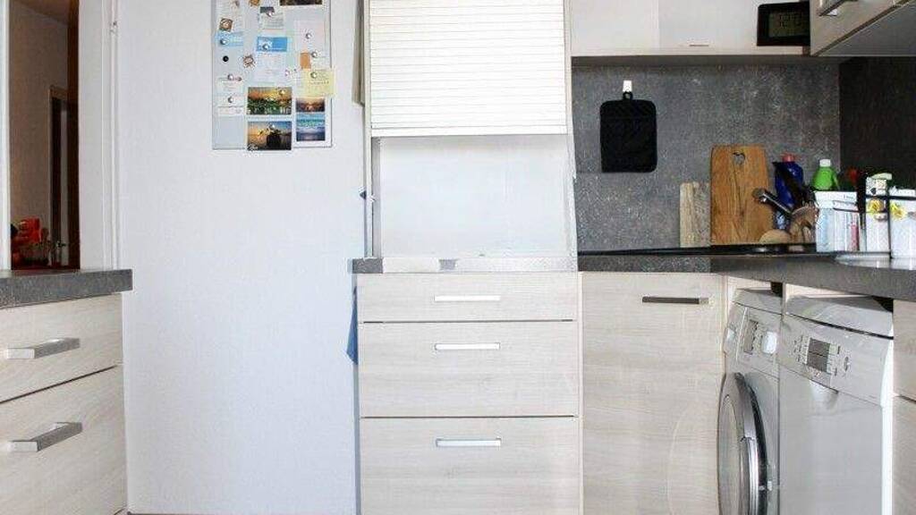 Die ebenfalls 2012 modernisierte Einbauküche bietet optimale Arbeitsbedingungen und fügt sich harmonisch in den Wohnstil der Wohnung ein.
