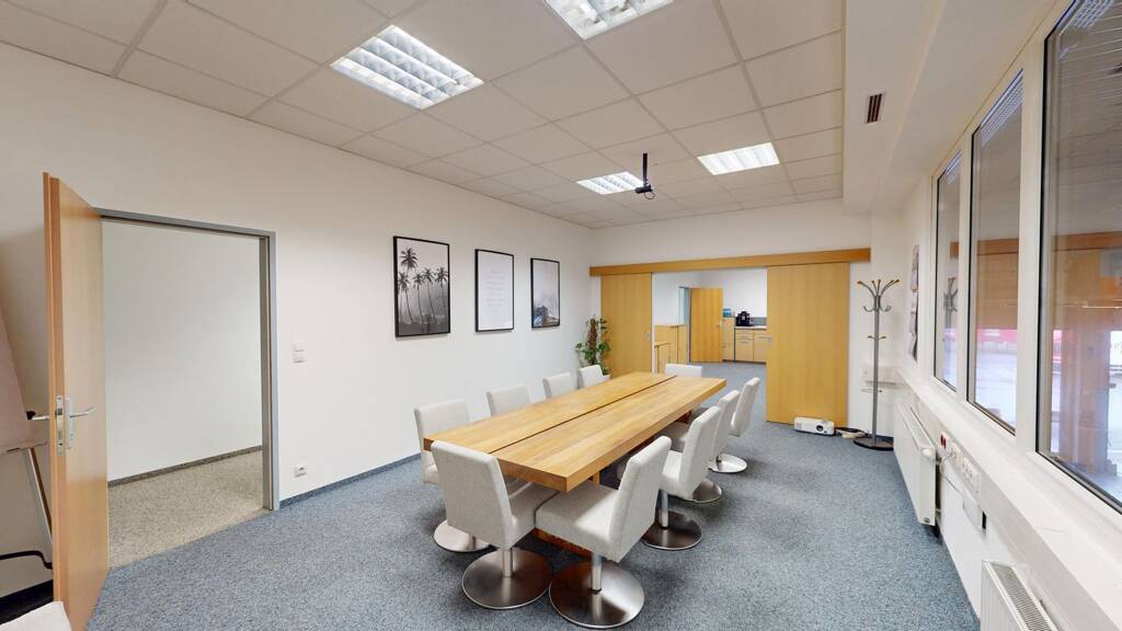 Die Fläche im 1. Obergeschoss des Firmengebäudes von Quehenberger bietet großzügige Büroräume mit ausreichend Platz für Ihr Team und flexible Nutzungsmöglichkeiten. Ein Balkon im Eingangsbereich dieser Etage ist ebenfalls Teil der Einheit.