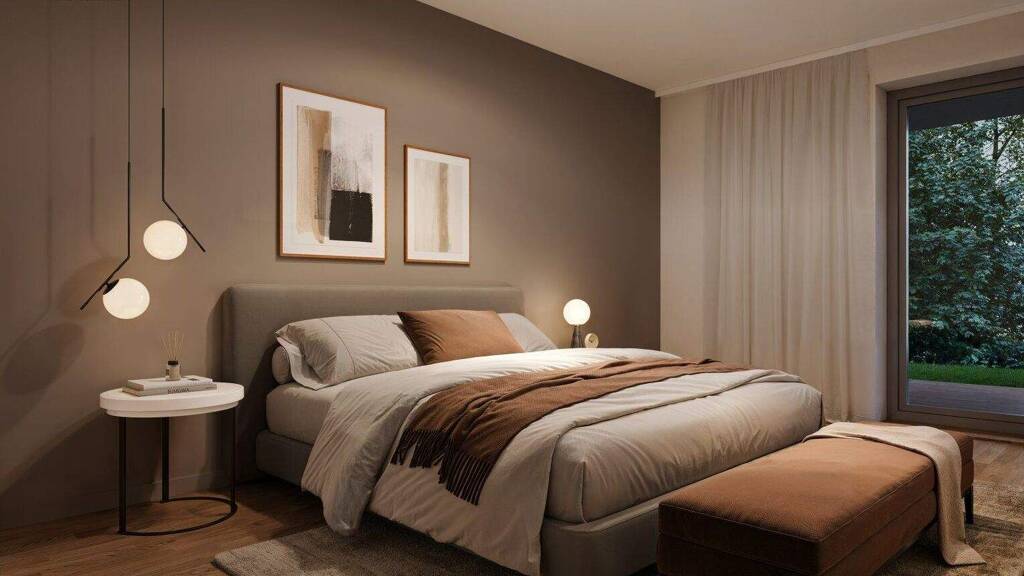 * Hochwertige Eichenparkettböden, elektrische Raffstores für perfekten Sicht- und Sonnenschutz sowie großformatige Fliesen.