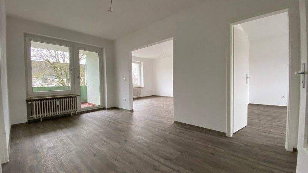 Das Zentrum dieser Wohnung ist die Essdiele mit dem Balkon. Die Küche und die 3 hellen Zimmer sind von hier aus zu erreichen. Ein großzügiges Bad in weiß mit Waschmaschinenanschluss und einem Fenster ergänzt das Ganze im Eingangsbereich.
