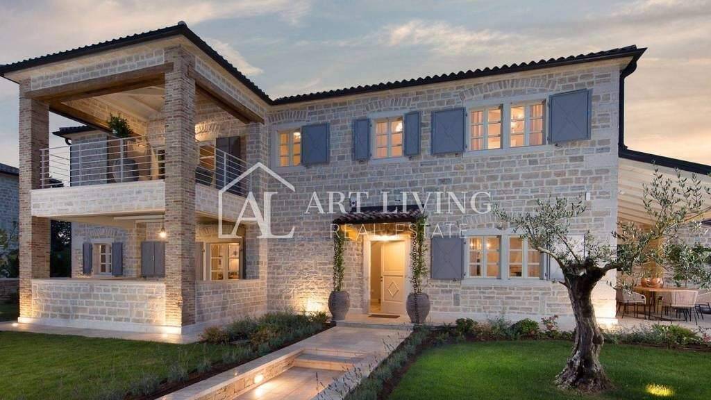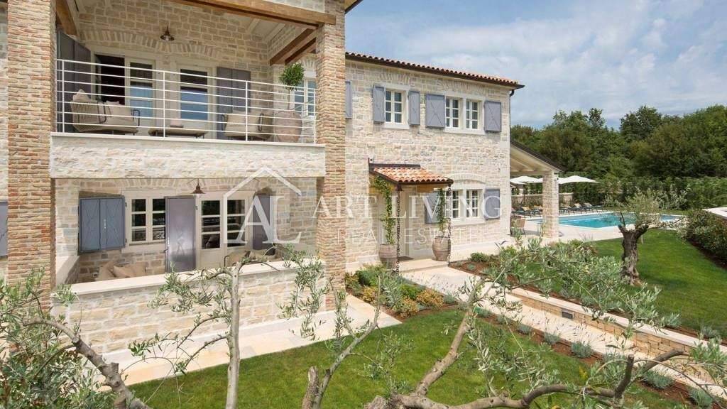 Luxuriöse Luxus-Steinvilla im istrischen Stil mit einem Pool von 297 m2 in Zentralistrien, 23 km von Porec und 26 km vom malerischen Rovinj entfernt. Die Villa ist elegant eingerichtet und mit Designermöbeln ausgestattet. Die Villa verfügt über einen hohen Komfort und vom Balkon im ersten Stock hat man einen wunderschönen Panoramablick auf das Meer.