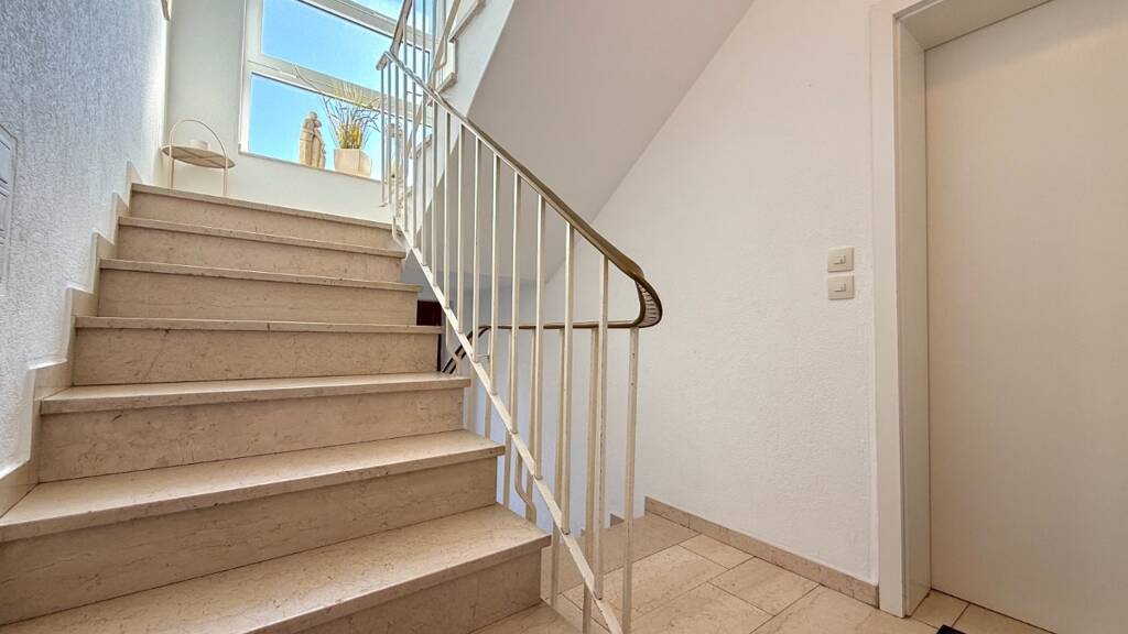 Beim Betreten der Wohnung empfängt Sie ein praktischer Eingangsbereich. Das Tageslichtbad sowie das separate Gäste-WC wurden im Jahr 2014 umfassend modernisiert und präsentieren sich in einem zeitlosen und geschmackvollem Stil und grenzen direkt an den Eingangsbereich an. Das Tageslichtbad inkl. elektrischer Außenjalousie überzeugt mit großzügiger Dusche und breiter Eckbadewanne und bietet damit hohen Komfort im Alltag. Eine eigene, kleine Wellnessoase wurde hier erschaffen.