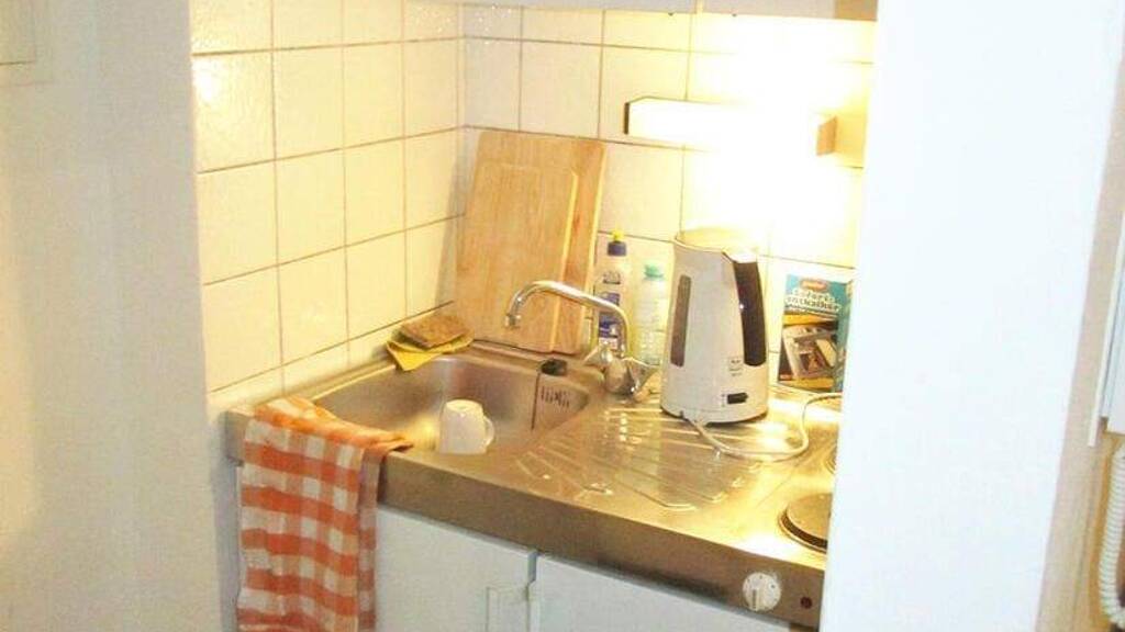 Die Kochzeile ist praktisch integriert bzw. angrenzend angeordnet und ermöglicht eine effiziente Nutzung des vorhandenen Platzes. Das Badezimmer ist funktional ausgestattet.