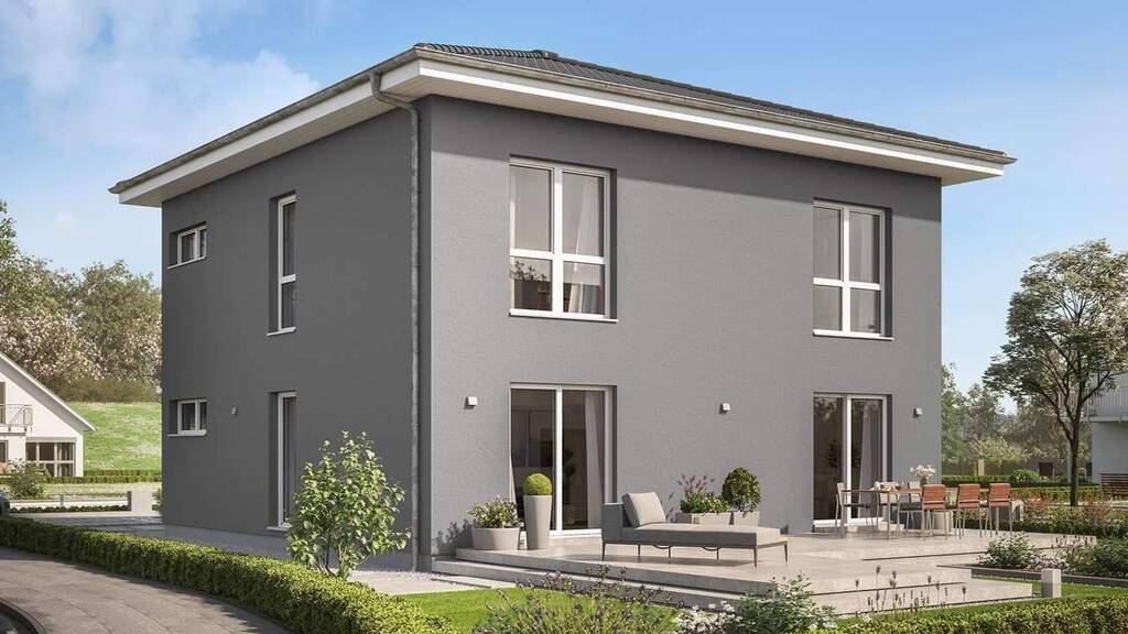 Ideal geeignet für urbane Umgebungen ist das LifeStyle 18.04 W, eine Stadtvilla für kompakte Grundstücke. Die quadratische Grundform des Fertighauses schenkt den 182 m² (Nettogrundfläche nach DIN 277) des LifeStyle 18.04 W sehr viel Tageslicht für eine angenehme Raumatmosphäre. Die Fenster sind meist bodentief ausgeführt - mit stylischer Teilung. Sie erzeugen durch ihre symmetrische Anordnung in Erd- wie Obergeschoss große optische Ruhe. Das Walmdach des LifeStyle 18.04 W wird spannend akzentuiert durch ein Zwerchdachelement auf der Hauseingangsseite. Die gut 95 m² (Nettogrundfläche nach DIN 277) des Erdgeschosses bestehen aus dem sehr attraktiv gestalteten Wohn-Ess-Bereich, der sich geradezu für eine elegante Küchenlösung mit mittig integriertem Küchenblock anbietet. Zusätzlich sind im Erdgeschoss der Stadtvilla Hauswirtschaftsraum, Gäste-WC, Arbeitszimmer und Flur zu finden. Das Obergeschoss bietet auf gut 87 m² (nach DIN 277) Platz für die private Wellnessoase und stellt gleich zwei Bäder zur Verfügung. Das Gefühl von Großzügigkeit und Luxus inmitten der Stadt entsteht zusätzlich durch das schöne Elternschlafzimmer mit separatem Ankleideraum, ein großes und ein weiteres Kinderzimmer. Durch den Luftraum und die Galerie ist das Gestaltungsprinzip optimal umgesetzt. Die Treppe erschließt das Obergeschoss zentral und fügt sich harmonisch ins Ensemble des LifeStyle 18.04 W ein. Nachhaltig gebaut, für die Stadt optimiert: Das LifeStyle 18.04 W ist eine tolle Idee für Baufamilien mit dem Wunsch nach dem Besonderen.