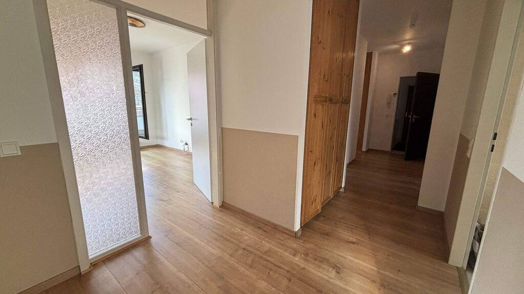 Die separate Küche ist funktional gestaltet und mit einer Einbauküche ausgestattet, die bereits im Objekt enthalten ist. Damit ist ein sofortiger Einzug ohne zusätzlichen Investitionsbedarf möglich. Der zentral gelegene Flur verbindet alle Räume effizient miteinander und bietet Platz für Garderobe sowie praktische Stauraumlösungen in eingebauten Wandschränken. Eine Abstellkammer bietet Platz und zusätzlichen Stauraum für alltägliche Gegenstände.
