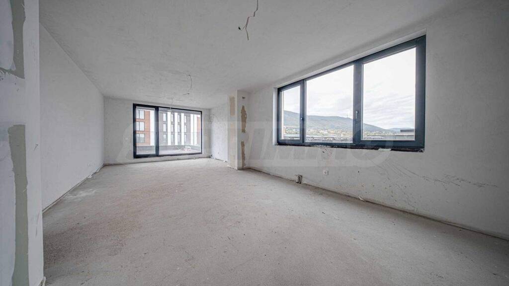 Die Wohnung befindet sich im 9. Stock eines Gebäudes mit 14 Gebäuden und ist nach Süden und Südwesten ausgerichtet, was viel natürliches Licht garantiert. Das Anwesen bietet einen Panoramablick auf das Witoschagebirge und die Stadt.