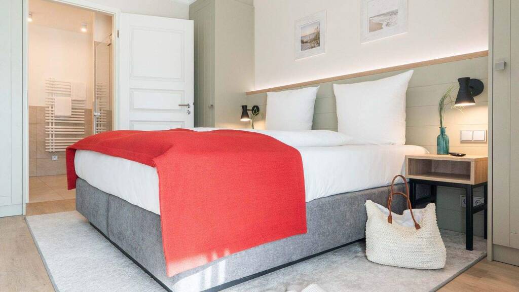 Dieses exklusive Penthouse im Apartmenthaus Kranichsruh vereint stilvolles Wohnen mit einem außergewöhnlichen Urlaubserlebnis – und eröffnet gleichzeitig attraktive Perspektiven als Kapitalanlage in gefragter Lage. Auf kompakt und clever gestalteter Fläche erwartet Sie ein modernes 2-Zimmer-Apartment mit besonderem Charakter. Der Wohnbereich bildet das Herzstück der Wohnung und überzeugt durch seine helle, offene Gestaltung. Die Küche ist dabei elegant in einer separaten Nische integriert und fügt sich harmonisch in den Raum ein, ohne aufdringlich zu wirken. Ein besonderes Highlight sind die großzügigen Fensterflächen im Wohnbereich, die den Blick auf das charmante Reetdachdörfchen Fuhlendorf freigeben und so ein einzigartiges, fast schon malerisches Wohngefühl schaffen. Das Schlafzimmer bietet einen ruhigen Rückzugsort, während das Badezimmer praktisch vom Wohnbereich aus zugänglich ist. Ein zusätzlicher Abstellraum direkt in der Wohnung sorgt für komfortablen Stauraum und unterstreicht die durchdachte Planung. Das absolute Highlight dieses Penthouses ist die weitläufige Dachterrasse. Von hier aus eröffnet sich ein beeindruckender Blick auf das Boddengewässer – ein Ort, an dem Sonnenuntergänge zu einem täglichen Erlebnis werden. Auf Wunsch kann die Dachterrasse mit einer hochwertigen Outdoorküche sowie einem Whirlpool ausgestattet werden und verwandelt sich damit in eine private Wohlfühloase unter freiem Himmel. Die Wohnung wird vollständig möbliert übergeben und ist sofort nutzbar – sowohl für die Eigennutzung als auch für die Ferienvermietung. Das flexible Nutzungskonzept ermöglicht eine Kombination aus Eigennutzung und Vermietung, wobei Eigentümern bis zu 4 Wochen pro Jahr zur Verfügung stehen. Für Kapitalanleger besonders interessant ist der professionelle Vermietungsservice der RELAMARE, der im Rahmen eines Rundum-Sorglos-Pakets sämtliche Aufgaben übernimmt und eine komfortable, weitgehend passive Bewirtschaftung ermöglicht. Als Teil von Deutschlands erstem Reethaus mit Dachterrasse hebt sich dieses Penthouse deutlich von klassischen Ferienimmobilien ab und spricht gezielt anspruchsvolle Gäste an – ein klarer Vorteil für Auslastung und Ertrag. Ergänzt wird das Angebot durch hochwertige Gemeinschaftseinrichtungen wie einen Fitnessbereich sowie einen exklusiven Wellnessbereich mit Saunen und Whirlpools. Im Untergeschoss stehen zudem praktische Nebenflächen wie Tiefgaragenstellplätze und Fahrradabstellräume zur Verfügung. Dieses Penthouse verbindet Ausblick, Privatsphäre und besonderes Wohnambiente zu einer Immobilie, die sowohl emotional als auch wirtschaftlich überzeugt.