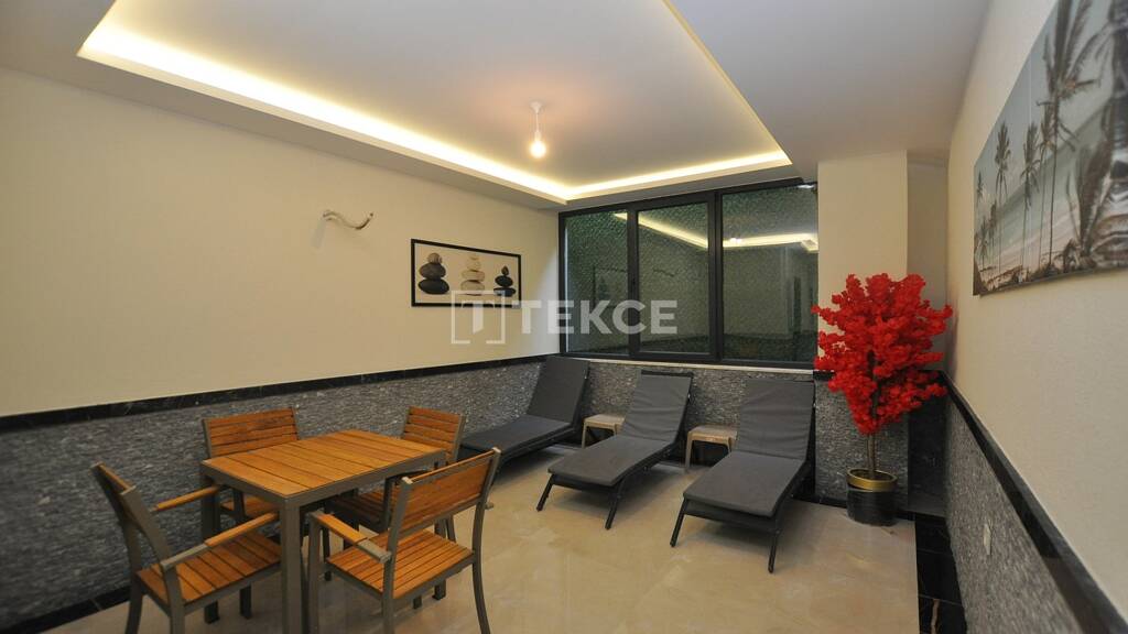Die Wohnung zum Verkauf in Alanya befindet sich in einem Boutiquekomplex, der aus nur einem Block besteht. Der Komplex ist mit einem Pool, einer Sauna, einem kalten Schwimmbad, einem Fitnesscenter, einem Chill-out-Raum, einem Spielplatz, Pavillons, Grillplätzen, Sonnenliegen, Tischtennis, Satellitenfernsehen, einem 24/7-Sicherheitsdienst, einem Generator, Aufzügen und Fahrradstellplätzen ausgestattet.