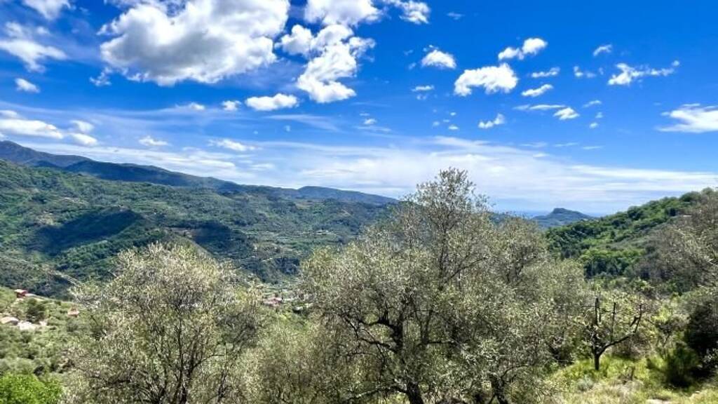 Diese wunderbare Liegenschaft liegt ruhig und bestens besonnt in den Hügeln oberhalb von Dolceacqua. Der Blick könnte schöner nicht sein; unverbaubar eröffnet sich ein traumhaftes Panorama auf das mittelalterliche Städtchen, die Kulisse der Seealpen und das am Horizont schimmernde Meer.