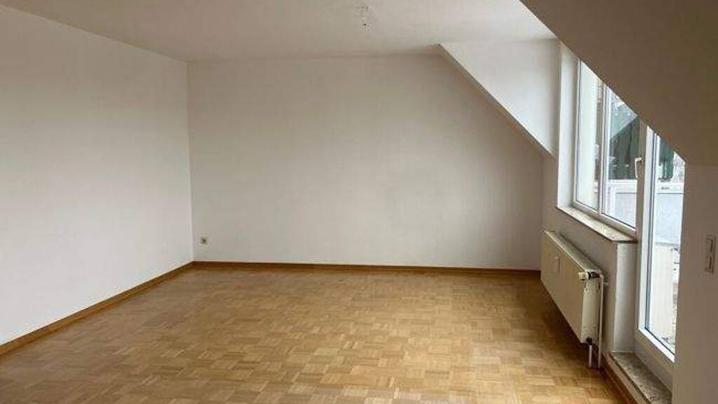 Schöne helle 2 Zimmer-Dachgeschosswohnung im Neubau. Die geräumige Küche verfügt über eine Einbauküche mit Geschirrspülmaschine, Waschmaschine, Kühlschrank, Herd und Backofen.