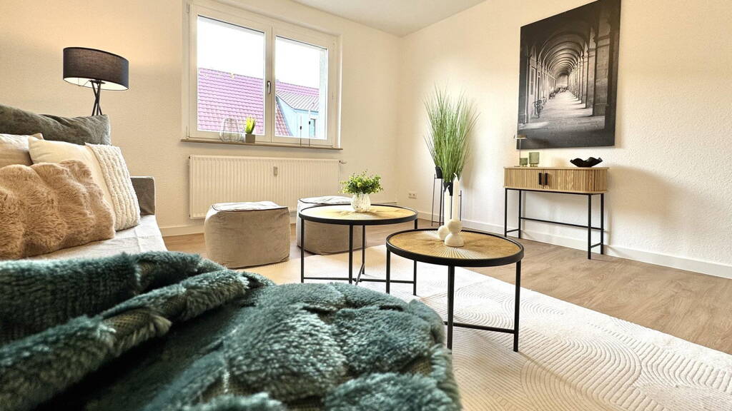 Die ca. 68 m² große Eigentumswohnung befindet sich im 1. Obergeschoss eines gepflegten Mehrfamilienhauses und überzeugt durch einen durchdachten, funktionalen Grundriss. Das Herzstück der Wohnung bildet der helle, einladende Wohnbereich, der ausreichend Platz für eine gemütliche Sofalandschaft bietet. Das ruhige Schlafzimmer verspricht erholsame Nächte, während das dritte Zimmer flexibel als Kinder-, Gäste- oder Homeoffice-Zimmer genutzt werden kann. Ein echtes Highlight ist das zeitgemäß erneuerte Tageslicht-Duschbad, das mit modernen Fliesen und hochwertigen Sanitärobjekten ausgestattet wurde. Die gesamte Wohnung präsentiert sich in einem bezugsfertigen Zustand - Sie müssen nur noch Ihre Möbel aufstellen. Abgerundet wird dieses attraktive Angebot durch zwei hauseigene PKW-Stellplätze direkt am Gebäude sowie ein eigenes Kellerabteil.