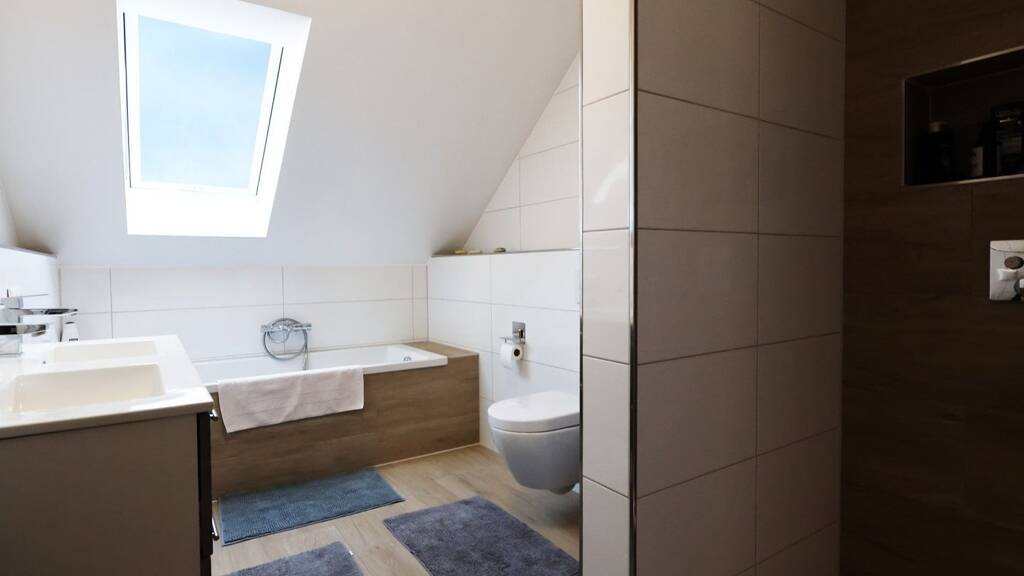 Genießen Sie luftige 2,70 m Deckenhöhen im Erdgeschoss und Obergeschoss, die für ein besonders großzügiges Raumgefühl sorgen. Die 3-fach verglasten Fenster garantieren nicht nur optimale Wärmedämmung, sondern auch hervorragenden Schallschutz - ideal für entspannte Abende in Ihrem neuen Zuhause. Im Erdgeschoss laden edle Fliesen zu einem stilvollen Ambiente ein, während im Obergeschoss warmes Laminat für eine gemütliche Atmosphäre sorgt.