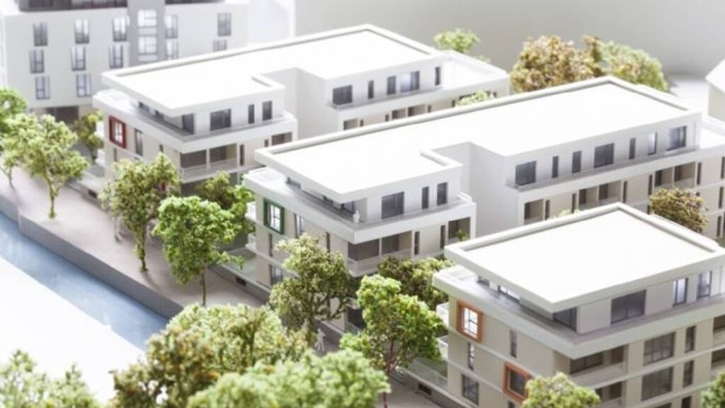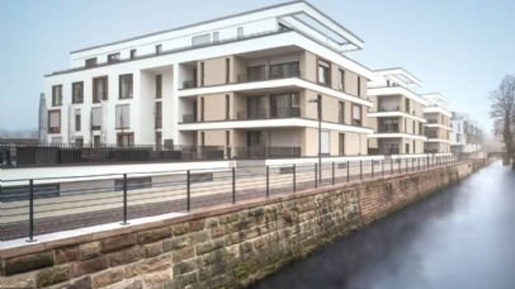 Das Wohnbauprojekt "Queich-Quattro" besteht aus insgesamt drei 3-geschossigen Stadthäusern mit unterschiedlicher Nutzenfunktion, die sich entlang der Queichuferpromenade in klarer Gliederung auf einem Sockelgeschoss präsentieren. Als östliches Kopfgebäude schottet der Hotelneubau an der Maximilianstraße die Wohngebäude vom Verkehrslärm ab. Die angebotenen Tiefgaragenstellplätze befinden sich unter dem westlichen Punkthaus,