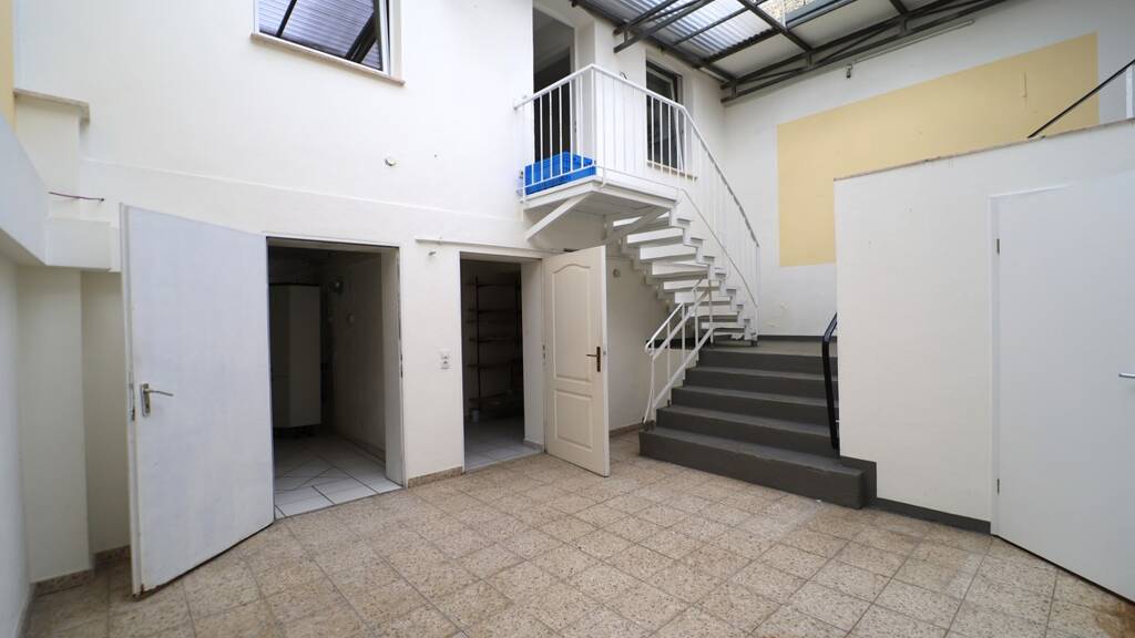 Der überdachte Innenhof verbindet beide Gebäude miteinander - ein geschützter Bereich, der sich wunderbar als Freisitz und Patio gestalten lässt. Ein kleiner Garten mit Terrasse im hintersten Bereich des Grundstücks, rundet das Angebot ab. Insgesamt präsentiert sich das Ensemble gepflegt und bereit für neue Ideen.