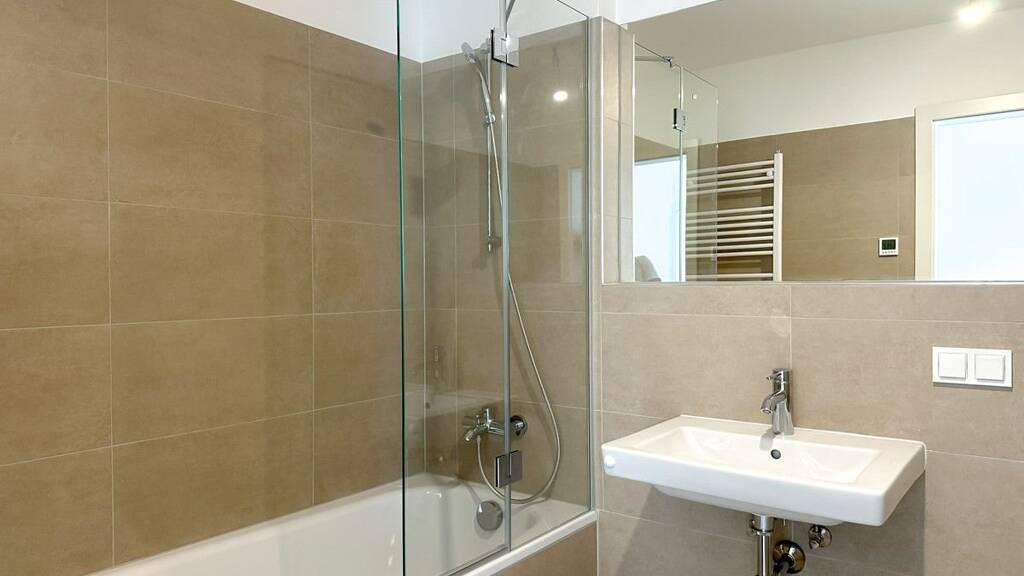 Die helle Küche lädt zu gemeinsamen Mahlzeiten ein, und das separate Zimmer kann als Büro oder Kinderzimmer genutzt werden. Das Bad punktet mit hochwertigen Feinsteinfliesen und Badewanne. Ein Anschluss für die Waschmaschine ist ebenso vorhanden.
