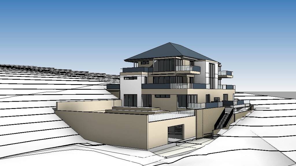 Dieses Angebot richtet sich gezielt an Investoren und Bauträger, die ein wertsteigerndes Projekt in einer Wachstumsregion suchen. Die vorhandene Planung nutzt die Hanglage des Grundstücks optimal aus: