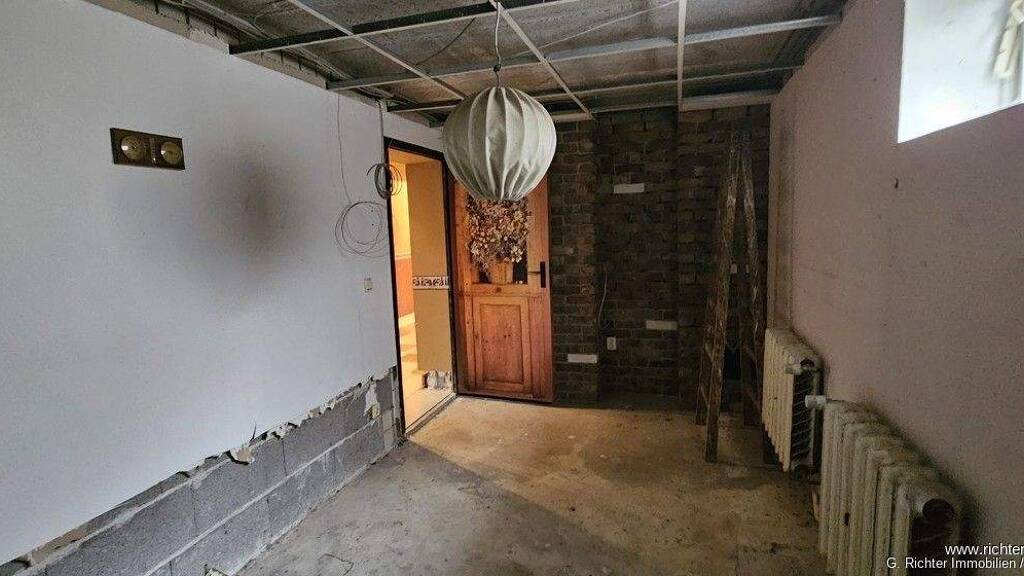 Das Objekt ist voll unterkellert und bietet somit zusätzliche Stauraum- und Nutzungsmöglichkeiten. Die Kellerräume sind aufgeteilt in einen Hauswirtschaftsraum, einer Küche, einem Kinderzimmer, einem Schlafzimmer, einem Bad, dem Flur und dem Heizungsraum.