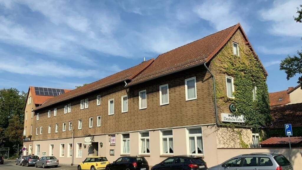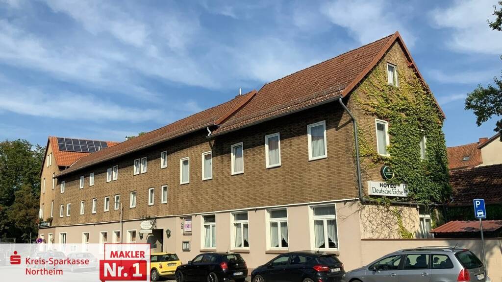 Dieses Hotel mit Gastronomie und Kegelbahn wurde vor 1900, um 1956 und ca. 1988 erbaut. Im Erdgeschoss befinden sich ein Frühstücksraum (für ca. 30 Personen) für die Hotelgäste nebst kleiner Küche, eine Gaststube (ca. 32 Plätze) zur Kegelbahn plus 2 Kegelräume (a ca. 13 Plätze) mit 2 Kegelbahnen, insgesamt 4 WC, ein Clubraum (für ca. 24 Personen), eine weitere Gaststätte (für ca. 50 Personen) mit separatem Eingang, eine große Küche und insgesamt 6 Lagerräumen. Ein Ladengeschäft mit einem größeren- und einem kleineren Raum, einer Teeküche und WC befindet ebenfalls im Erdgeschoss mit separatem Eingang. Im 1. Obergeschoss befinden sich insgesamt 14 Fremdenzimmer (4 Einzelzimmer, 10 Doppelzimmer-Wandlung in ein 3-Bett und ein 4- Bett Zimmer) mit jeweils eigenem Duschbad, 8 Lagerräumen und 2 WC´s. Im 2. Obergeschoss befinden sich 7 weitere Einzelzimmer nebst Duschbad. Die Privatwohnung befindet sich mit einer Küche, einem Bad und einem Wohn- und Esszimmer im 2. Obergeschoss. Hinzu kommen im Dachgeschoss noch 2 Schlafzimmer, eine Ankleide und Bad mir Badewanne und Dusche. Das Kellergeschoss verfügt über insgesamt 17 Räume. Hier sind u. a. die Hausanschlüsse, eine Waschküche, die Heizung, der Fettabscheider und diverse Abstell- und Lagerräume untergebracht.