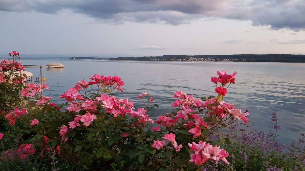 Von hier aus gelangen Sie auf den großen Balkon, auf dem Sie sonnige Momente genießen und sogar einen schönen Blick auf den See erhaschen können - ein Ort zum Wohlfühlen.