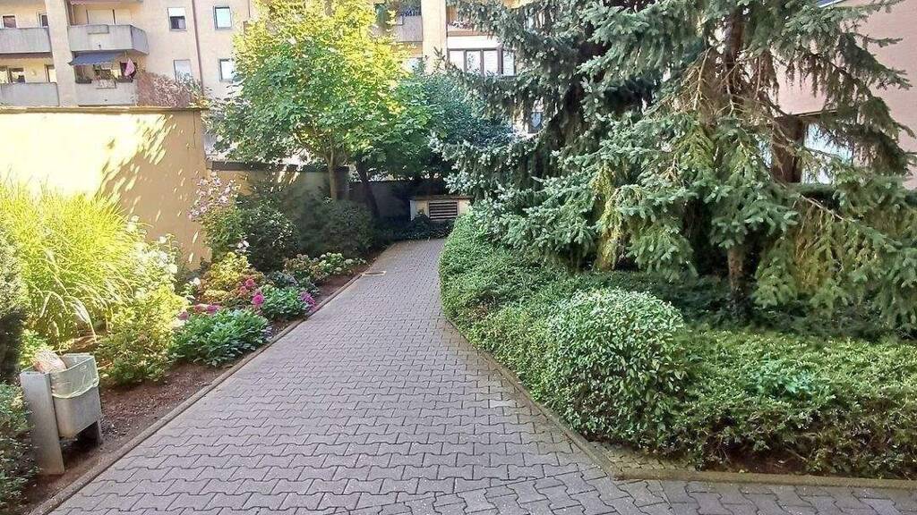 Die Wohnung befindet sich in ruhiger Lage in einem gepflegten Anwesen neben einer kleinen Grünanlage. Der Hofbereich ist gärtnerisch angelegt mit Sitzmöglichkeiten und einem Kinderspielplatz.