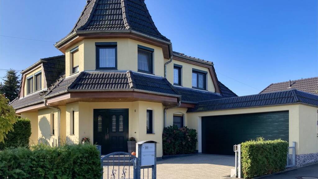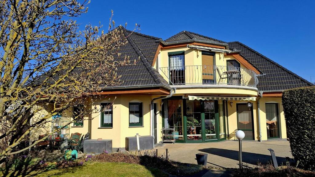 - Baujahr 2004 - ca. 1050 m² Grundstücksfläche - ca. 160 m² Wohnfläche - ca. 55 m² zusätzliche Nutzfläche - 6 Räume auf 2 Etagen - gehobene Ausstattung - Küche (mit Einbauküche) - Tageslichtbad mit Whirlpool-Wanne und Dusche - 2. Tageslichtbad mit Dusche - Flüssiggasheizung mit privatem Erdtank (freie Betankung) - Heizung zentral mit Fußbodenheizung, Kamin - Massivbauweise, Dämmputz, nicht unterkellert - Walmdach mit Türmchen, Ziegeleindeckung - Kunststofffenster, 2fach Isolierung - Rollos manuell/elektrisch und Maß-Fliegengitter - Doppelgarage mit elektrischem Tor - großzügiger Garten, Terrasse - überdachter Swimmingpool, ca.4x8 m, Solardusche - eigener Brunnen mit Beregnungsanlage zur Gartenbewässerung - Gartenhäuschen und Schuppen - hochwertige Umzäunung