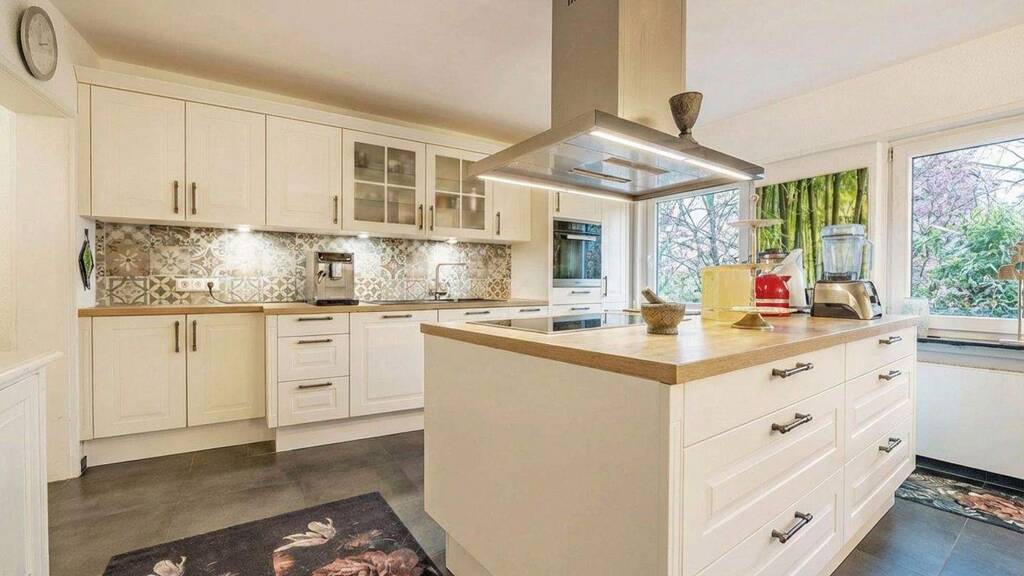 Die hochwertig ausgestattete Einbauküche fügt sich harmonisch ein und bietet den idealen Rahmen für kulinarische Genussmomente - ob beim gemeinsamen Abendessen oder dem schnellen Frühstück am Morgen.