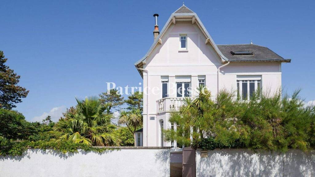 A villa from the 1930s with a swimming pool and an outbuilding, surrounded by an enclosed, tree-filled garden, in a family-oriented seaside resort on