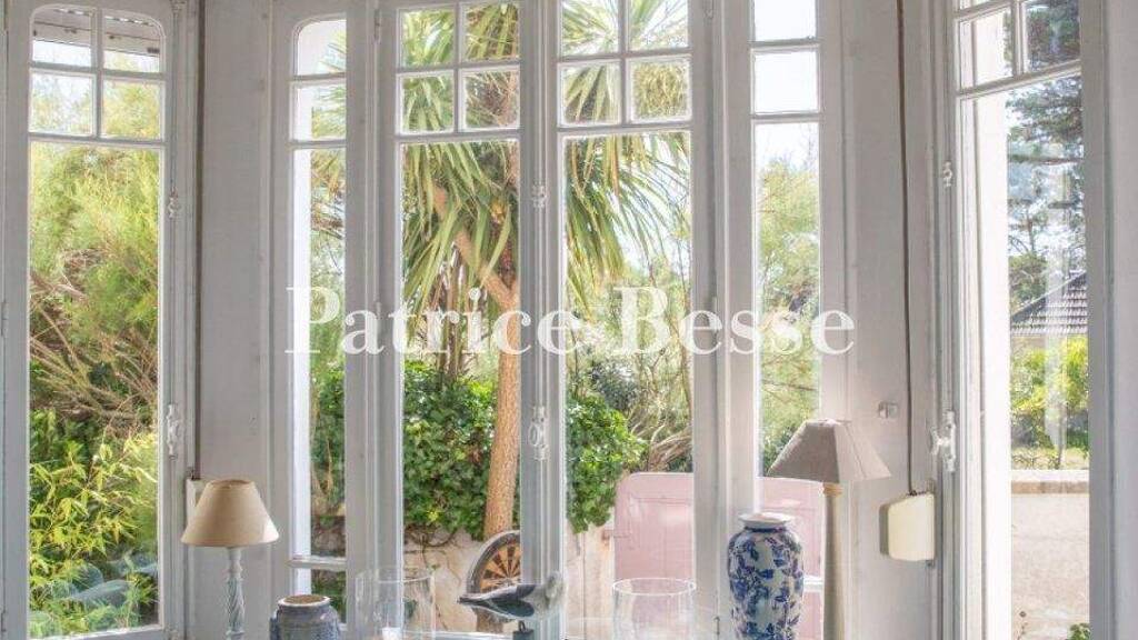 The property is accessible from either a wooden pedestrian gate, flanked on each side by walls, which opens on to mown grassy areas providing plenty of room for vehicle parking, or an eyebrow-arched double-leaf gate, located on a different street. In addition, the villa's garden has been landscaped into two separate areas: on one side, a patio featuring exotic plants, a swimming pool and the outbuilding and, on the other, lawn bordered by shrubs and flowers.