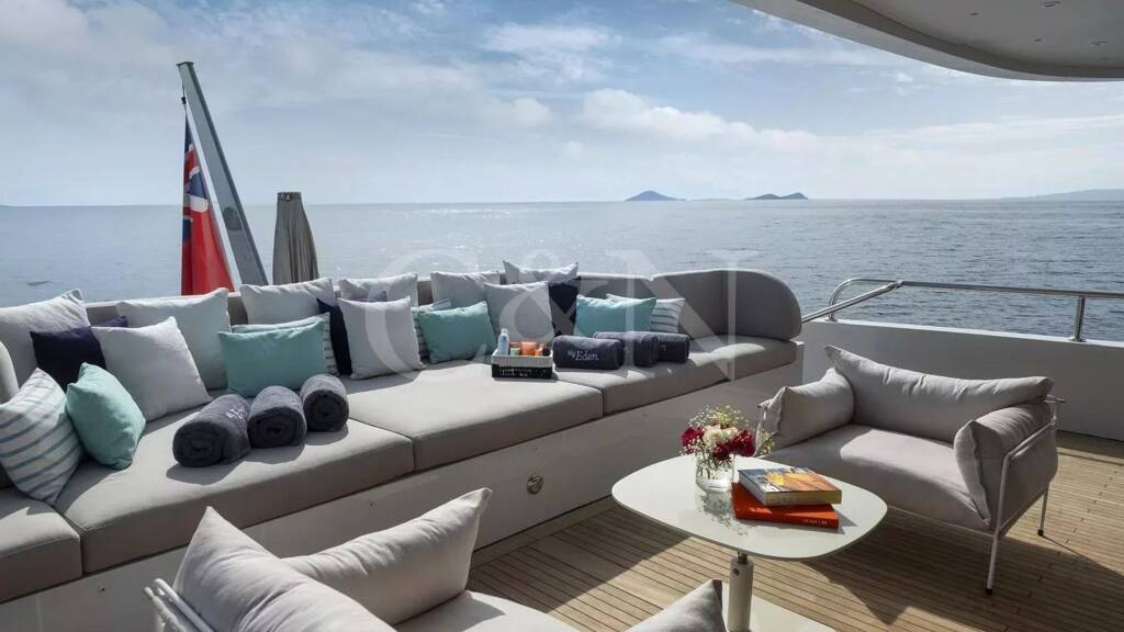 Step aboard My Eden, a stunning 45.42-metre motor yacht built by the renowned Greek shipyard Golden Yachts. Designed with elegance and comfort in mind, My Eden features exquisite interior styling by Ira Petromanolaki - Yacht Design, creating an atmosphere of sophistication and tranquillity.Accommodating up to 12 guests in six luxurious cabins, My Eden offers a platform for fun, led run by a highly experienced Captain and crew. Eden is a gateway to an unforgettable charter, whether guests seek adventure, relaxation, or a seamless blend of both.The interior of My Eden is a sanctuary of style and comfort. Her main salon is a modern space where dining and socialising take centre stage, seamlessly blending sophistication and warmth and decorated with a complementary combination of soft, light colours and marble.Large, floor-to-ceiling windows line the perimeter of the main salon and open up the connection to the water. A luxurious seating area provides an inviting zen retreat for guests, while the interior dining setup is perfect for cosy evening meals. Exterior: Ultimate Outdoor LivingMy Eden is a platform for adventure and fun. The yacht's expansive deck spaces are perfect for lounging in the sun, enjoying alfresco dining, or simply taking in breath taking ocean views.On the upper deck, a Jacuzzi offers elevated and uninterrupted ocean views, the perfect spot to unwind and relax. For fitness enthusiasts, the main deck can transform into a fully equipped gym, complete with weights, TRX bands, Pilates mats, and a treadmill.My Eden's large aft deck is a highlight, offering seamless access to the water and a great space to set up her various water toys. A large window connects the spacious aft deck to the galley, allowing for extra interaction between guests and crew.With accommodation for up to 12 guests in six beautifully appointed and thoughtfully designed cabins, My Eden offers unparalleled comfort and flexibility. The master suite features panoramic views, a private exterior deck, and a luxurious hot tub, creating a true oasis at sea.The VIP Suite includes a comfortable double bed and an additional pullman berth for added versatility. Two spacious and refined double cabins provide elegant sleeping arrangements, while two twin cabins can be easily converted into double beds to suit the specific needs of the charter clients.My Eden is fully equipped to deliver an unforgettable experience on the water, with an extensive collection of toys and amenities for every type of guest:Chase Boat: Pirelli 9m with twin 225hp Yamaha engines for coastal exploration.Water Toys: 1 Flite board2 Sea Bobs F52 Stand-up paddleboards2 Paddleboard steppers3 Canoe kayaks3 WakeboardsWater skis equipment2 Tubes and 1 sofa tubeYacht slideBrand new 1 Yamaha VX Commercial Jet SkiOnboard gym equipment for staying active at sea.