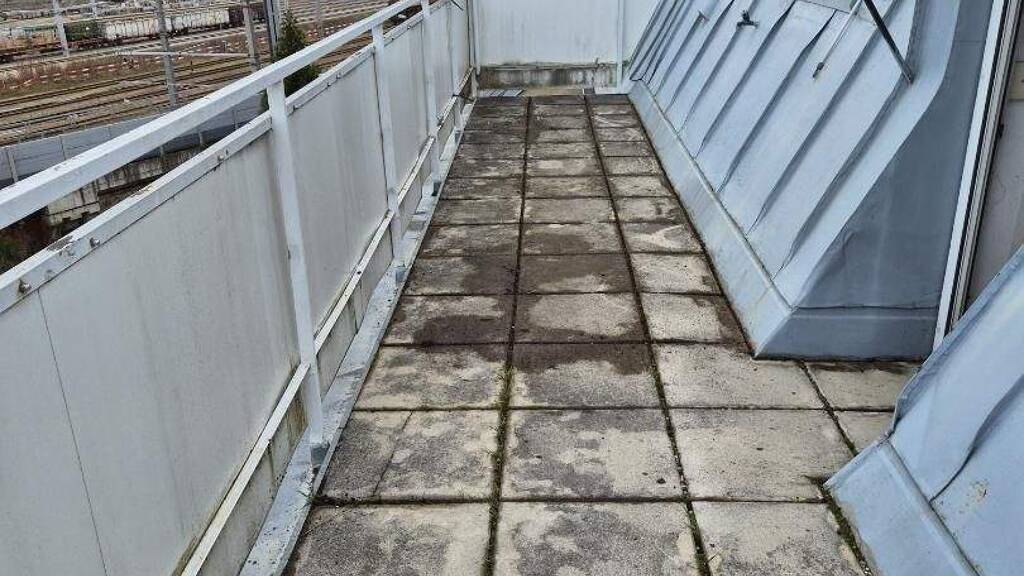 Im 5. Liftstock auf ca. 80,30 m² Wohnfläche befinden sich ein zentrales Vorzimmer, eine Küche (südostseitig), ein Schlafzimmer (südostseitig) mit Zugang auf die ca. 16,45 m² Dachterrasse , ein Wohnzimmer mit Abstellraum (südostseitig), ein Badezimmer mit Badewanne, Dusche und WC. Die Wohnung ist renovierungsbedürftig (muss alles neu gemacht werden).