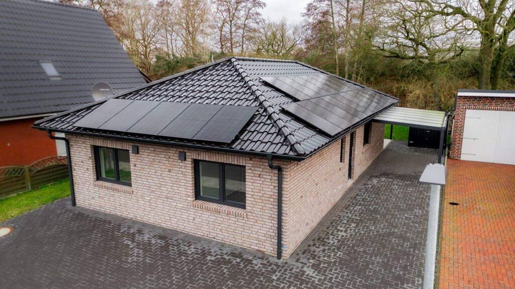 Die Kombination aus Photovoltaikanlage, Wärmepumpe und Fußbodenheizung sorgt für effizientes Heizen und ein behagliches Raumklima. Ergänzt wird dies durch ein dezentrales Lüftungssystem, das für kontinuierlich frische Luft im gesamten Haus sorgt.