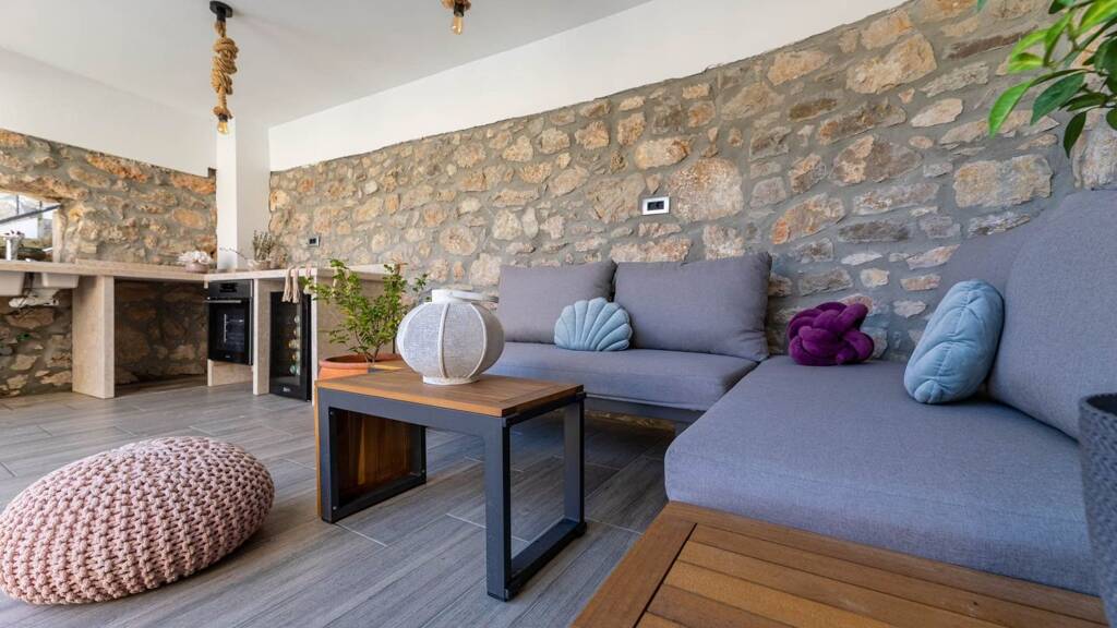 Zum Verkauf steht ein charmantes und komplett renoviertes Haus im mediterranen Stil in der kleinen Stadt Risika, nur 45 Autominuten von der schönen Stadt Rijeka entfernt.