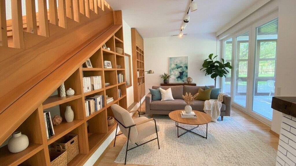 * eingebaute Bibliothek im Wohnbereich