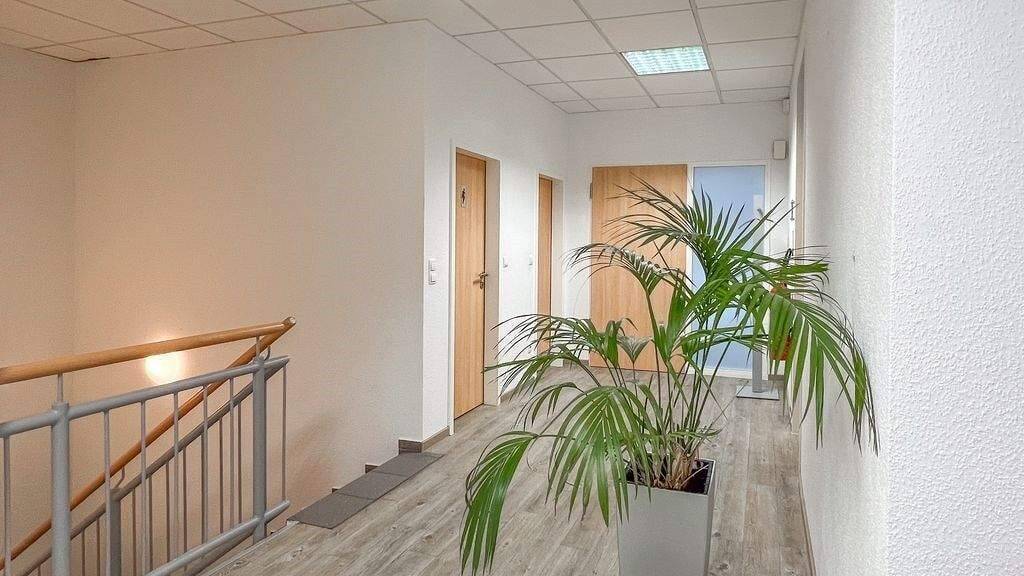 Die Fläche teilt sich wie folgt auf: - Empfangsbereich im Erdgeschoss - 8 Büros bzw. Besprechungsräume im Erdgeschoss - WC-Anlage auf beiden Etagen - Aufenthaltsraum im 1. Obergeschoss - 6 Büros bzw. Besprechungsräume im 1. Obergeschoss