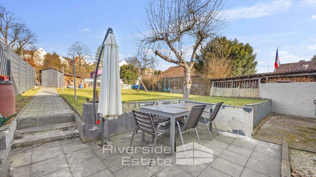 Der Außenbereich präsentiert sich gepflegt und familienfreundlich. Neue Pflasterflächen, ein moderner Zaun sowie der liebevoll angelegte Garten schaffen eine angenehme Atmosphäre und laden zum Verweilen im Freien ein. Eine Garage rundet dieses attraktive Immobilienangebot ab.