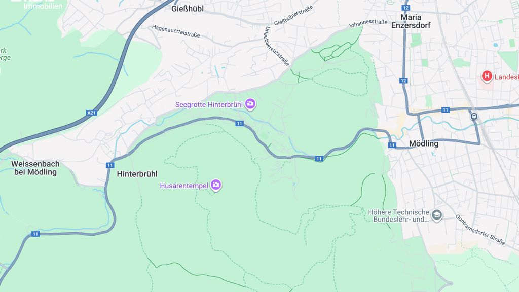 Das Haus liegt am Ortsrand von Mödling, unweit der Gemeindegrenze zu Hinterbrühl und dem bekannten Ausflugsziel "Seegrotte" in einer ruhigen Gasse.