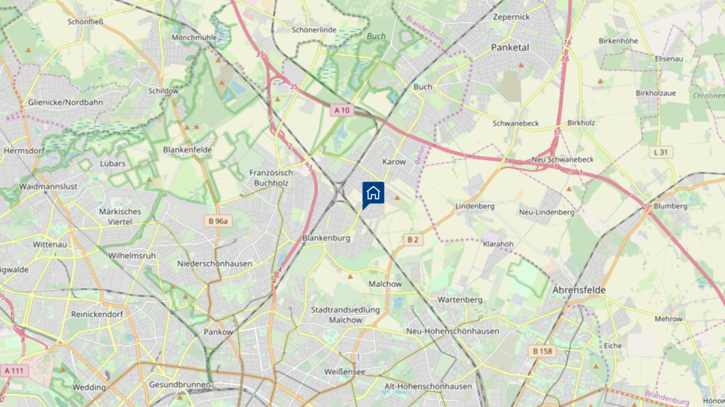 Karow bietet eine ideale Kombination aus ruhigem Wohnen und guter Anbindung an das Stadtzentrum. Die Nachbarschaft ist geprägt von gepflegten Einfamilienhäusern, großzügigen Gärten und zahlreichen Spielplätzen, die besonders für Familien attraktiv sind.