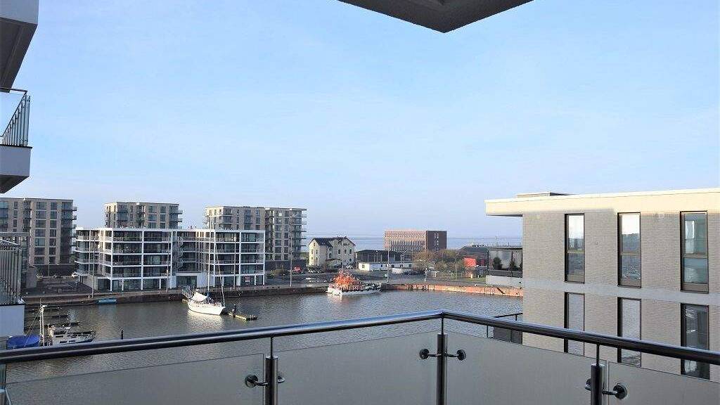 Das Highlight der Wohnung ist der großzügige Balkon in nordwestlicher Ausrichtung und wundervollem seitlichen Blick auf das Wasser und die Schiffe im Hafen - hier kann man sicherlich einige schöne Stunden verbringen.