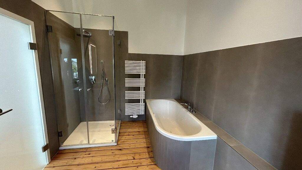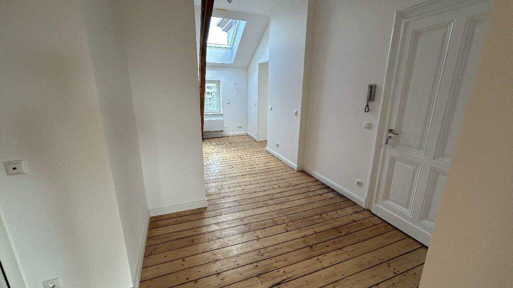 Diese außergewöhnlich großzügige und lichtdurchflutete 2-Zimmer-Dachgeschosswohnung mit ca. 120 m² Wohnfläche bietet exklusives Wohnen auf hohem Niveau. Die Wohnung befindet sich im obersten Geschoss eines gepflegten Mehrfamilienhauses und vereint offene Raumgestaltung mit modernem Wohnkomfort. Der weitläufige Wohn- und Essbereich beeindruckt durch seine offene Architektur, große Fensterflächen und die angenehme Raumhöhe mit Sichtbalken, die dem Raum eine besondere Atmosphäre verleihen. Die Wohnung verfügt über ein geräumiges Schlafzimmer mit viel Platz für Schrank- und Stauraummöglichkeiten. Die moderne Küche ist offen zum Wohnbereich gestaltet und kann nach individuellen Vorstellungen eingerichtet werden. Das stilvoll geflieste Badezimmer ist mit einer Badewanne sowie einer separaten Dusche ausgestattet und bietet ebenfalls Tageslicht.