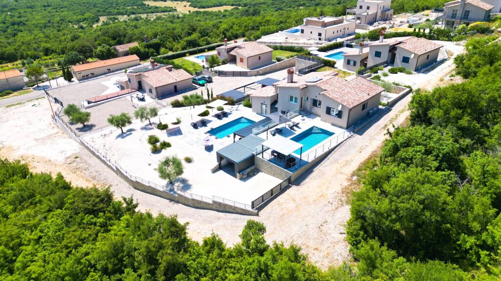 Inmitten einer der exklusivsten Villensiedlungen Istriens, erhebt sich diese außergewöhnliche Villa in der charmanten Ortschaft Stanisovi, unweit des historischen Städtchens Labin und der azurblauen Küste der Adria. Die Immobilie liegt in einer privaten, architektonisch harmonisch gestalteten Siedlung mit lediglich acht neu errichteten Villen, zu der ausschließlich die Eigentümer Zutritt haben. Die Zufahrt wird nach Abschluss aller Bauarbeiten durch ein elektrisches Eingangstor mit Fernbedienungssystem kontrolliert, wodurch höchste Diskretion und Sicherheit garantiert sind.
