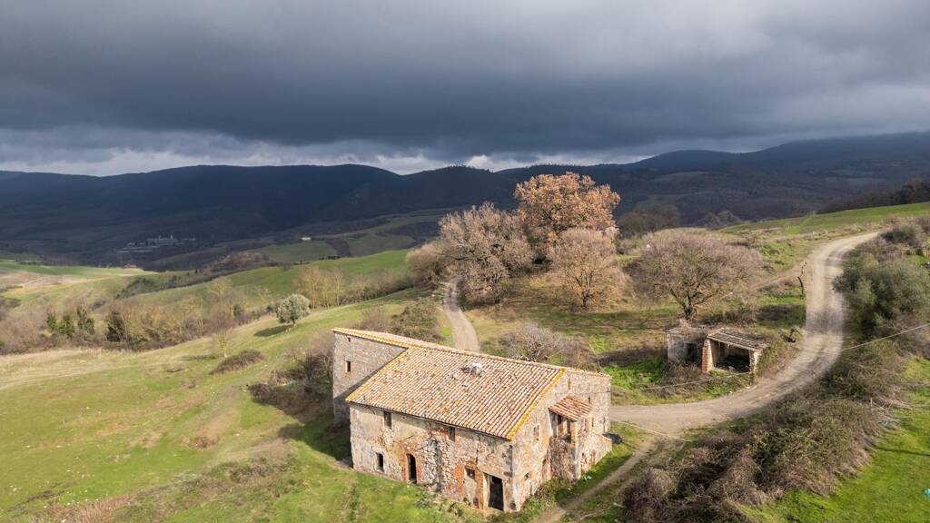 Inmitten der malerischen Hügel nahe Monte Calcinaio und mit einem atemberaubenden Panorama, das das Herz jedes Naturliebhabers höher schlagen lässt, liegt dieses alte Bauernhaus, das im Jahre 1700 erbaut wurde. Mit seiner charakteristischen, beeindruckenden steingemauerten Struktur und seiner anmutigen Erscheinung bildet dieses alte Bauernhaus eine hervorragende Gelegenheit für Interessenten, die ihren Traum von der Sanierung eines historischen Anwesens verwirklichen möchten. Es sollte betont werden, dass das Dach dieses historischen Hauses bereits vor 20 Jahren sorgfältig erneuert wurde, was einen soliden Grundstein für die kommenden Umbauarbeiten bietet. Zusätzlich zum Haupthaus verfügt das Anwesen über zwei Nebenhäuser, die sich als Gästehäuser, Lagerräume oder kreative Rückzugsorte eignen könnten. Diese Vielzahl an Räumlichkeiten bietet zahlreiche Möglichkeiten für vielseitige Nutzung und individuelle Gestaltungsfreiheit. Das Bauernhaus ist bereits ans Wasser- und Stromnetz angeschlossen, sodass die grundlegenden Voraussetzungen für eine umfassende Sanierung gegeben sind. Die Zufahrtsstraße ist eine öffentliche Gemeindestraße und wird sorgfältig von der Gemeinde instand gehalten, was eine einfache und sichere Erreichbarkeit des Anwesens garantiert. Das Grundstück der Immobilie umfasst beeindruckende 3.000 m² und bietet viel Raum für kreatives Gestalten und individuelle Nutzungsmöglichkeiten. Sollte dies für Ihre Pläne noch nicht ausreichend sein, besteht die Möglichkeit, zusätzliches Grundstück zu erwerben, was noch mehr Freiraum für Ihre Träume ermöglicht. Zusammengefasst ist dieses Angebot ideal für alle diejenigen, die ein Anwesen mit einer Fülle an Möglichkeiten und unglaublich viel Charakter suchen.