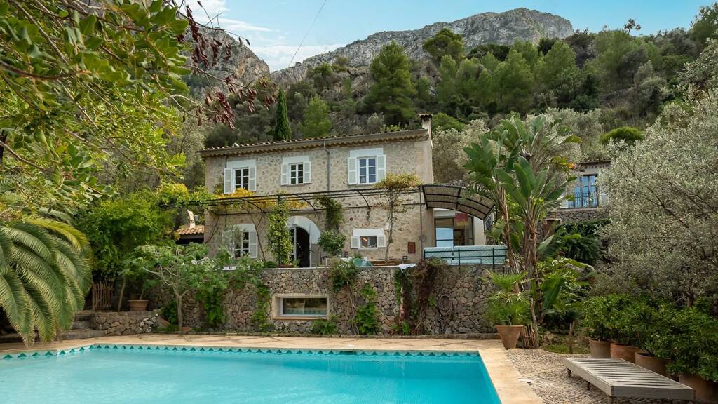 Der atemberaubende Außenbereich verfügt über einen üppigen, reifen Garten mit verschiedenen Obstbäumen und vielen Terrassen, von denen man einen atemberaubenden Blick auf das Meer genießen kann. Der schöne Pool hat die Besonderheit, dass er von einem nahe gelegenen Bach gespeist wird. Das Anwesen bietet auch ausreichend Parkplätze und ist nur 45 Minuten mit dem Auto oder dem öffentlichen Bus von der Inselhauptstadt Palma entfernt.