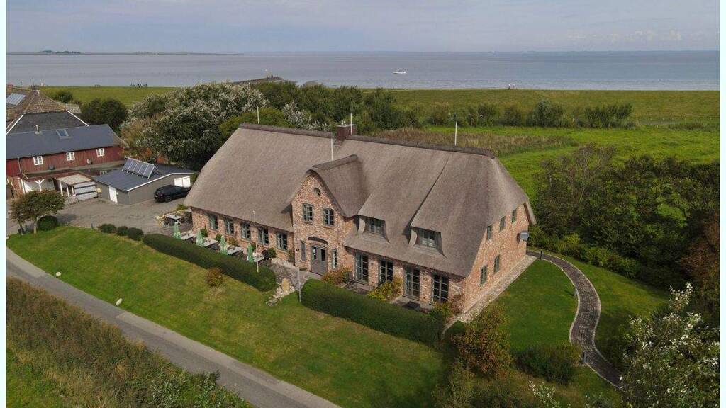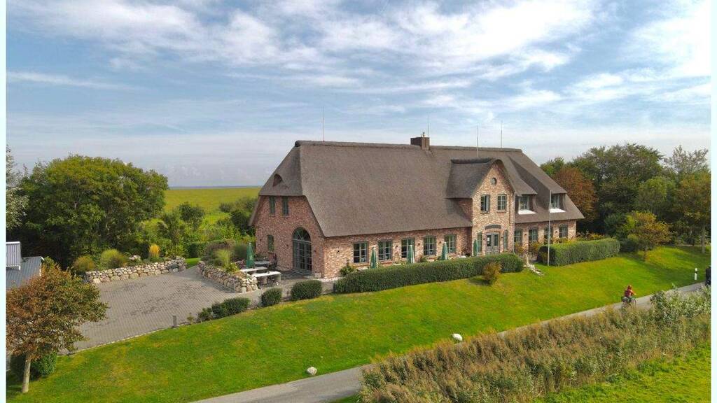 In absolutem TOPZUSTAND präsentiert sich dieses wunderschöne Wohn- und Geschäftshaus unter Reet. Das Traditionslokal "Hooger Fähre" wurde nach einem Brand in 2021 komplett neu errichtet in nachhaltiger Vollholzbauweise und besonders isolierter Bodenplatte. Dabei wurde neben zeitgemäßer Energetik gesteigerter Wert auf eine hochwertige moderne Gestaltung gelegt. Dominiert wird das Anwesen vom großzügigen Gasthausbereich über 2 Ebenen mit offener Galerie sowie den sonnigen Außenterrassen auf der Süd- und Westseite. Zwei separat zugängliche Ferienwohnungen mit eigenen Südterrassen sind gut vermietet.