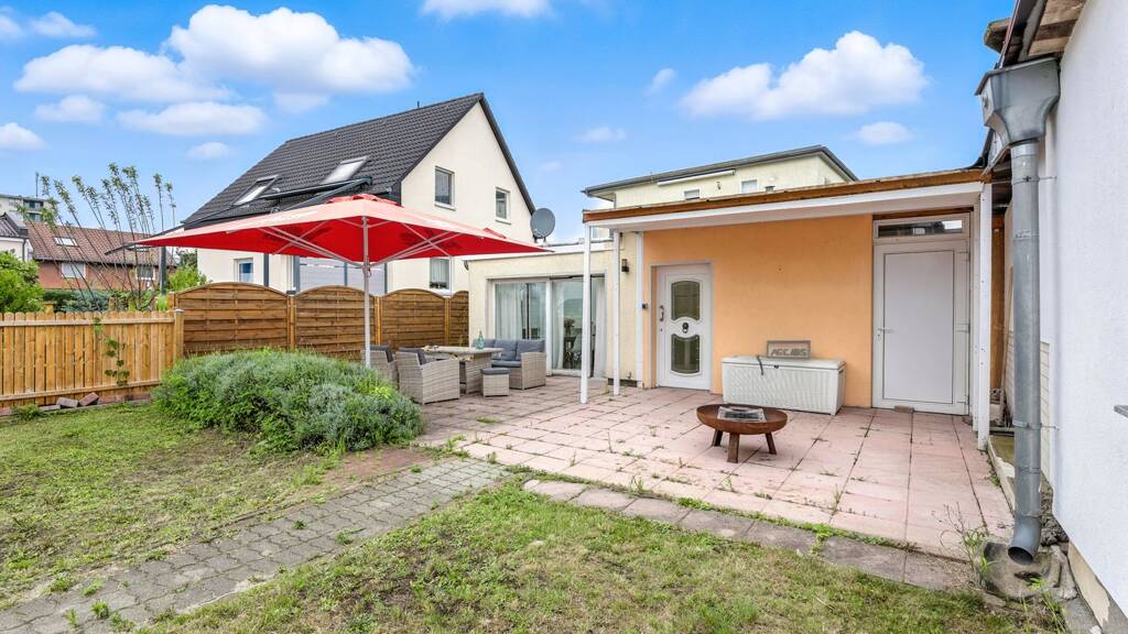 In einer ruhigen Wohnlage befindet sich dieses 663 m² große Grundstück, das sich im allgemeinen Wohngebiet befindet. Laut den geltenden Festsetzungen ist hier eine GRZ von 0,2 und eine GFZ von 0,4 zulässig, womit eine Bebauung mit bis zu 2 Vollgeschossen möglich ist. Damit bietet das Grundstück vielseitige Möglichkeiten für eine individuelle Neubebauung - ideal für ein großzügiges Einfamilienhaus. Aktuell befindet sich auf dem Grundstück ein Bungalow aus dem Baujahr 1937 mit einer Wohnfläche von ca. 100,70 m². Dieser wurde ca. 2005 modernisiert und verfügt unter anderem über ein 2020 neu gestaltetes Badezimmer mit Fußbodenheizung und großformatigen Fliesen, eine Einbauküche, Laminatboden sowie eine Gasheizung. Die Küche ist unterkellert. Die Fenster wurden 2005 ebenfalls erneuert. Besonders hervorzuheben ist die sehr große Terrasse, die zusätzlichen Wohnkomfort bietet. Auf dem Grundstück befinden sich außerdem eine Garage mit ca. 30,23 m² sowie ein weiteres Gebäude aus dem Jahr 2008 mit ca. 48,47 m² Fläche. Ob zur direkten Nutzung, als Modernisierungsprojekt oder für eine komplette Neubebauung - dieses Grundstück bietet eine seltene Kombination aus attraktiver Lage, solider Bebauungsmöglichkeit und großem Potenzial.