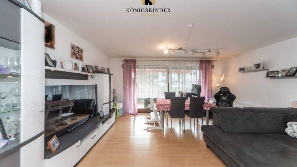 Das großzügige Wohn- und Esszimmer bildet den Mittelpunkt der Wohnung und bietet viel Platz für gemütliche Abende oder gesellige Stunden mit Freunden und Gästen. Von hier aus gelangen Sie direkt auf den Balkon, der mit seinem Blick in die ruhige Nachbarschaft zum Entspannen und Verweilen einlädt.