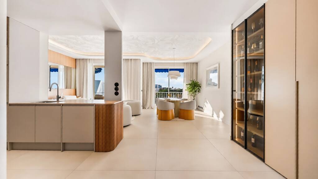 Located in the heart of the prestigious Croisette, this stunning fully renovated apartment with high-end finishes and exceptional materials offers a privileged living environment just steps from downtown Cannes.
