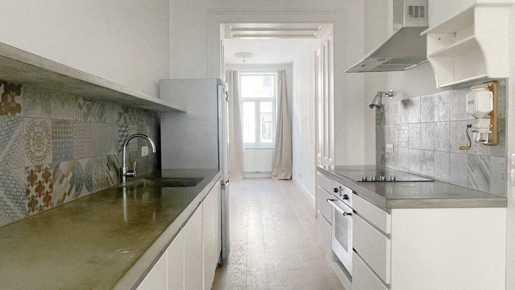 Im Mittelpunkt der Wohnung steht eine individuell gestaltete Küche, die nicht nur funktionaler Raum, sondern zugleich kommunikatives Zentrum ist. Von hier aus öffnen sich die Wege zum Balkon, zum großzügigen Wohnzimmer, zu einem der Schlafzimmer sowie zum Vorraum. Ein fließender Grundriss, der Offenheit und Struktur in harmonischem Gleichgewicht hält.